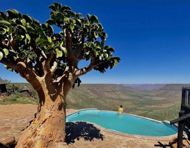 Une autre possibilité de lodge avec vue imprenable sur la vallée de la rivière Klip. Une vue splendide à admirer tout en sirotant un verre sur la terrasse ou en nous baignant dans la piscine.
